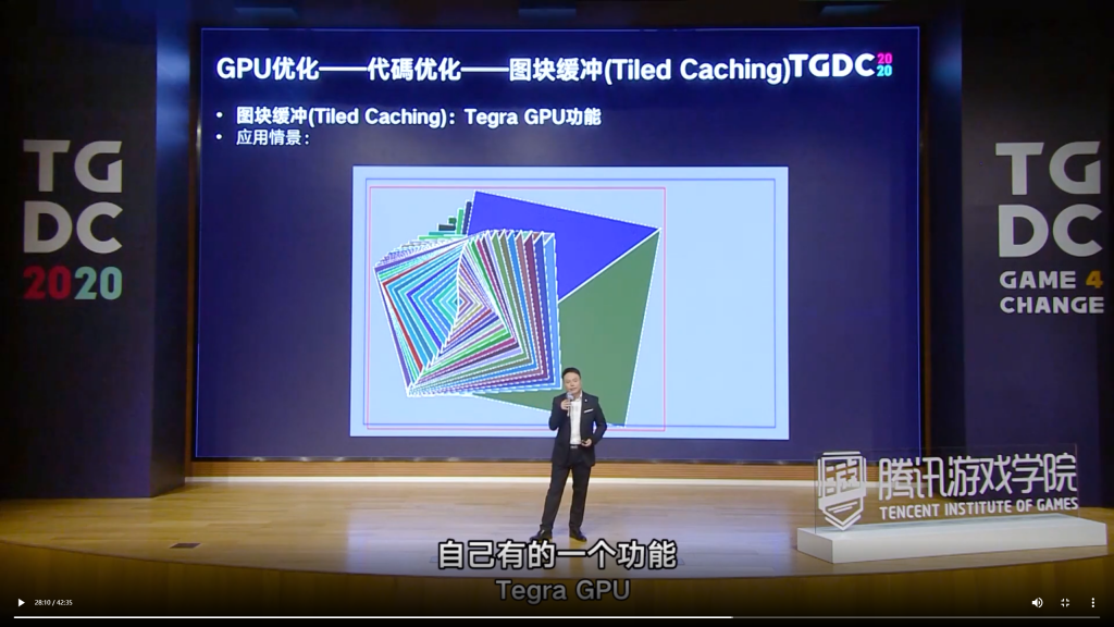Tegra GPU可以把渲染缓冲划分成很多图块,一个图块一个图块的播放渲染请求。可以提高命中cache。适用于大面积粒子效果。收集渲染命令和播放由一定开销。当使用大量的顶点属性或频繁修改属性时不建议使用。